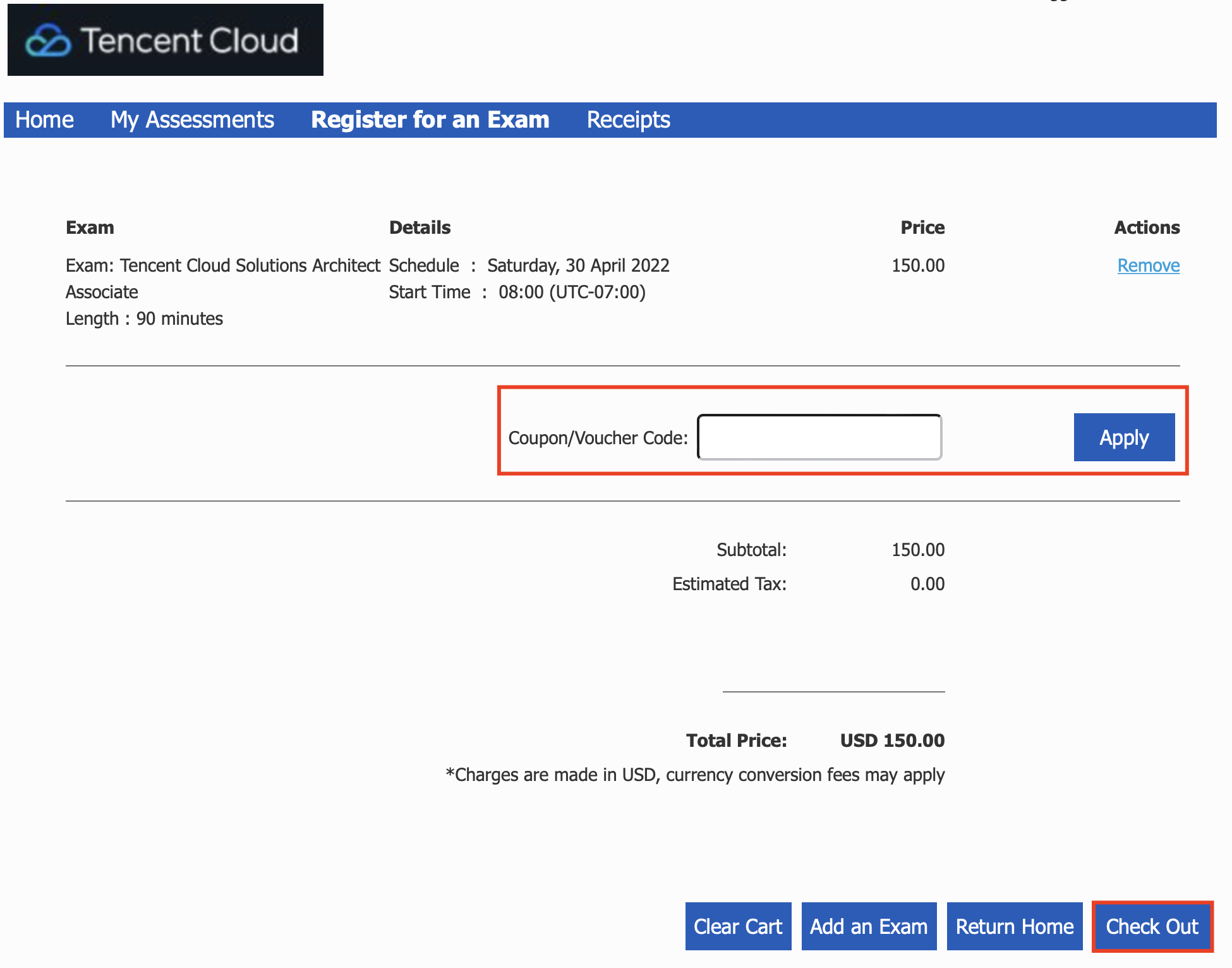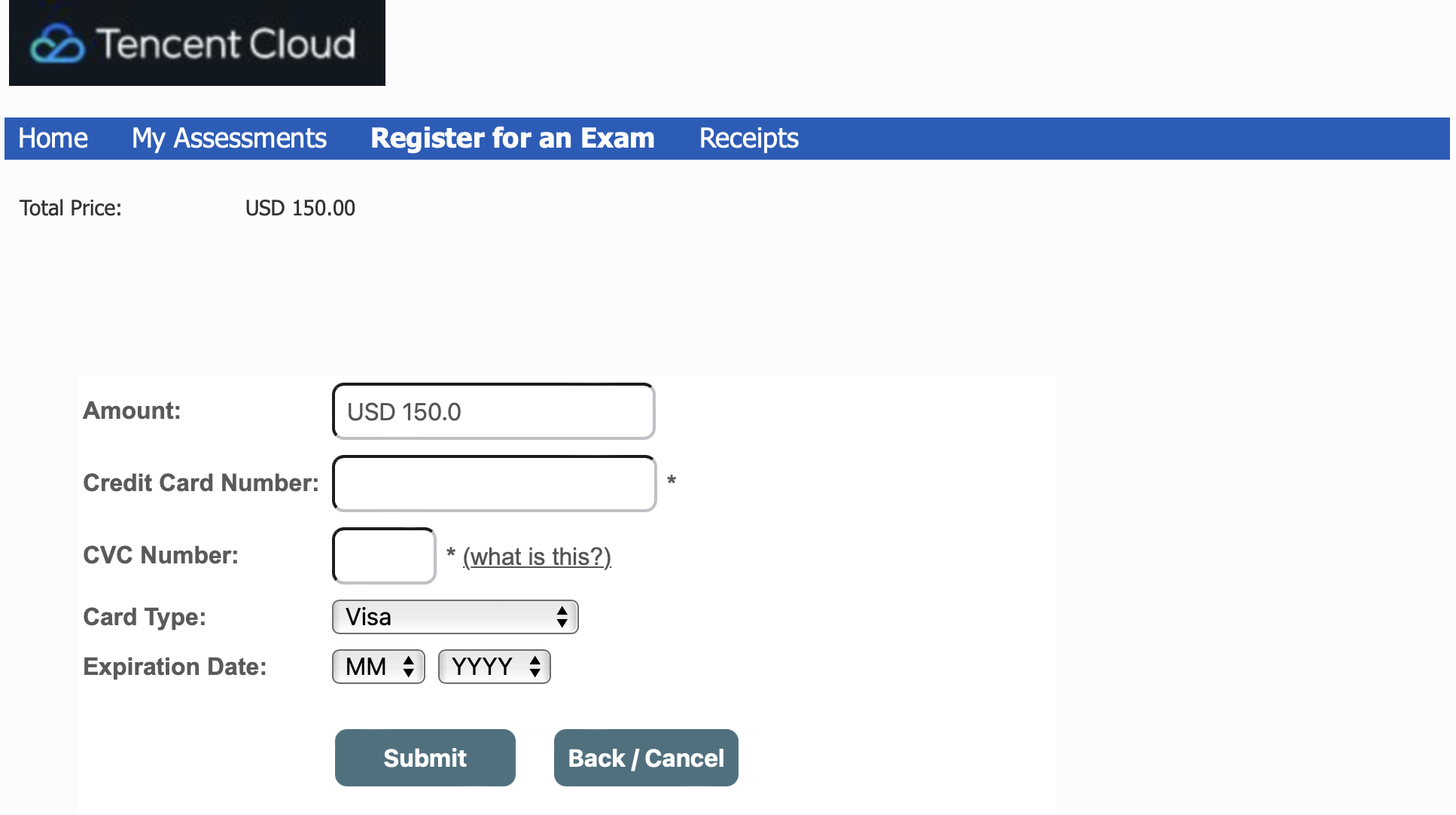 You can reschedule your exam up to 24 hours before your scheduled exam start time by logging in to your Tencent Cloud Webassessor account. If you reschedule your exam less than 24 hours before your scheduled exam start time, you will be charged a late rescheduling fee. If you cancel your exam less than 24 hours before your exam time, you will be charged a late cancellation fee. I encountered technical difficulties while taking the online proctored exam. Can I re-register and reschedule my exam?