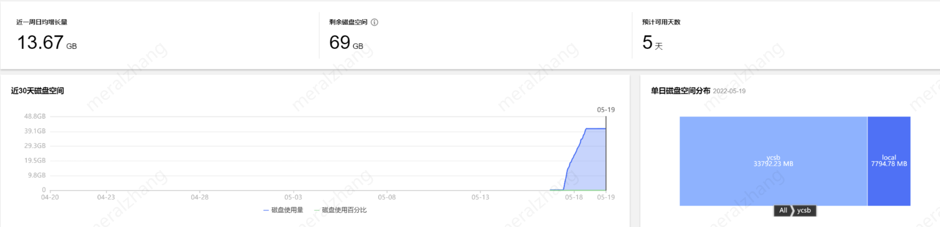 剩余磁盘空间 = 购买磁盘空间 - 数据空间
