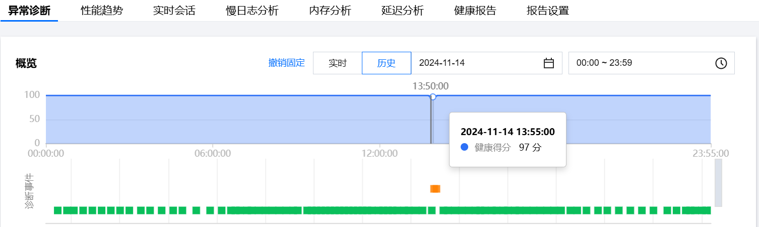 异常诊断功能为用户的数据库实例提供实时的性能监控、健康巡检、故障诊断,让用户既可以直观地感知数据库实例实时的运行状况,也可以定位实时出现的性能异常。