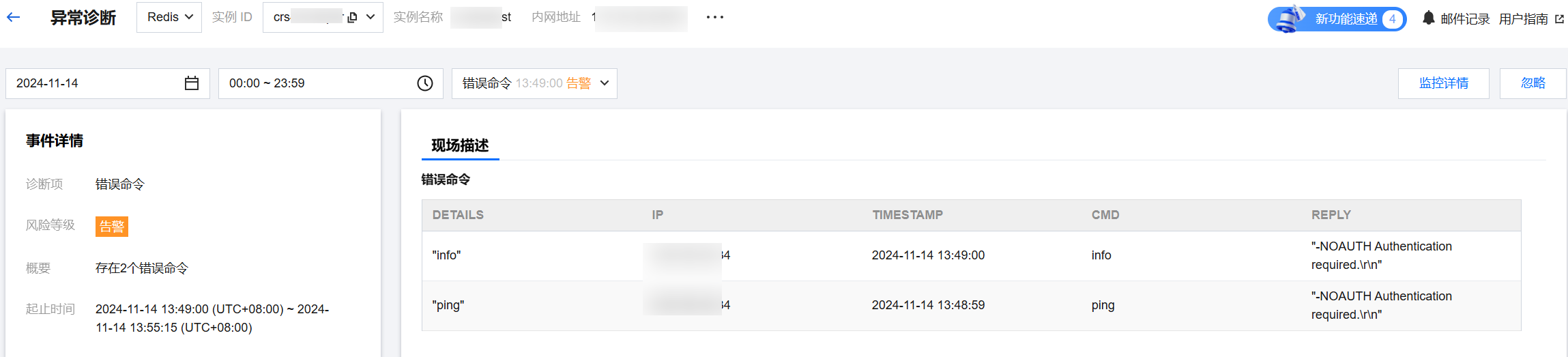 在诊断详情中,单击具体的事件告警所在行,或者鼠标悬停至事件告警上,单击查看,进入事件详情页面,查看事件详情。