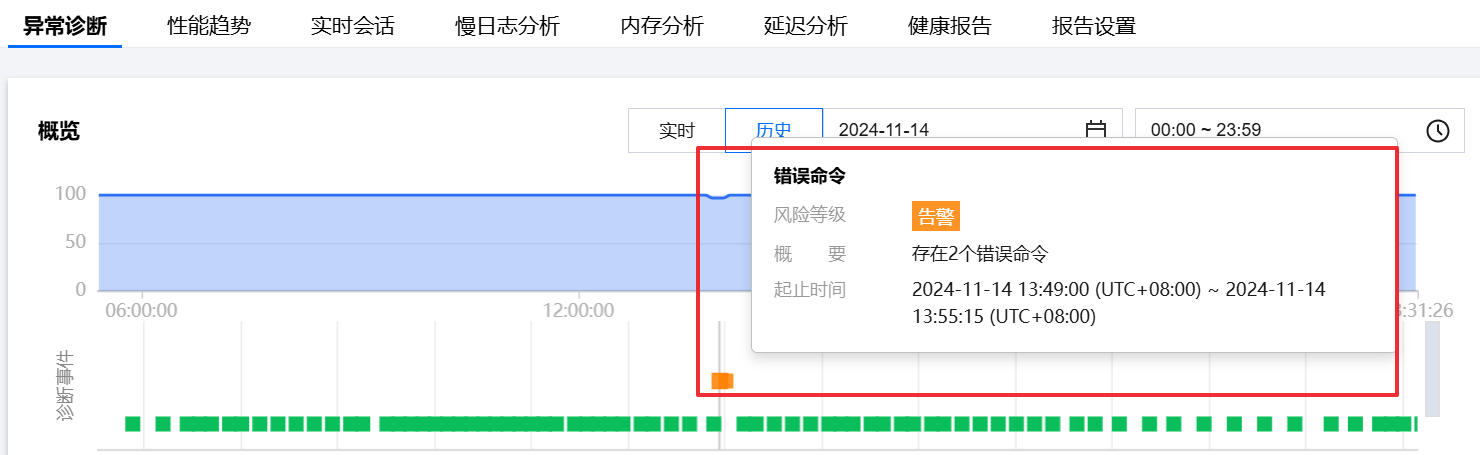 实时:选择实时,展示近三小时的风险分布和诊断详情。