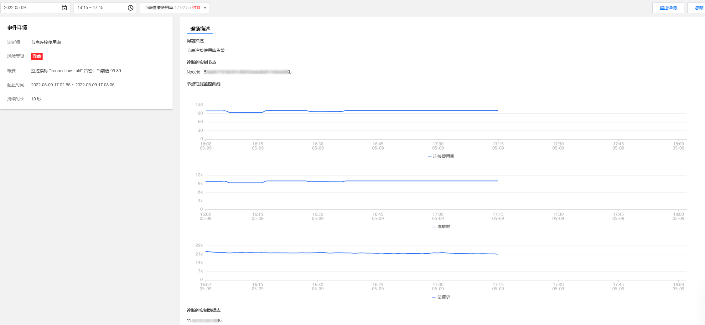 事件详情:包括诊断项、起止时间、风险等级、概要等信息。