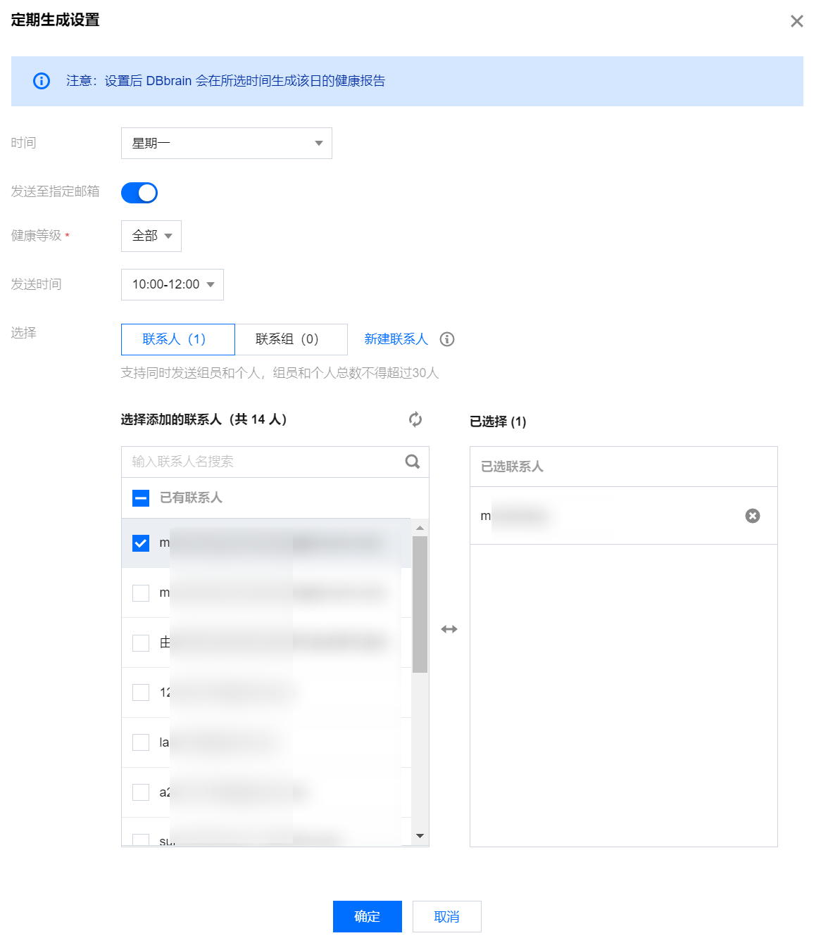 方式一:在实例管理页面创建定期健康报告(单个或多个实例)