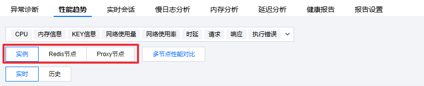 3. 选择待查看的实例、Redis 节点或 Proxy 节点。