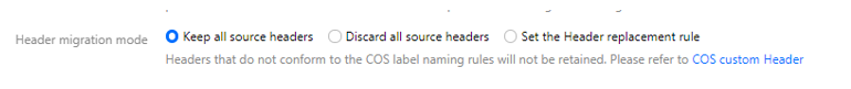 如果源桶中的文件设定了 Header/Tag 并且需要在迁移后保留,请选择保留或设置替换规则。