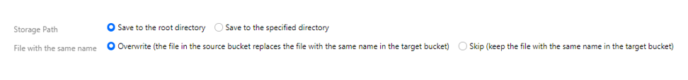 保存到指定目录:将源桶中的文件保持原始相对路径保存到指定目录中。