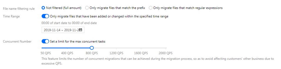 开启时间范围,只迁移指定时间范围内新增或变更的文件。