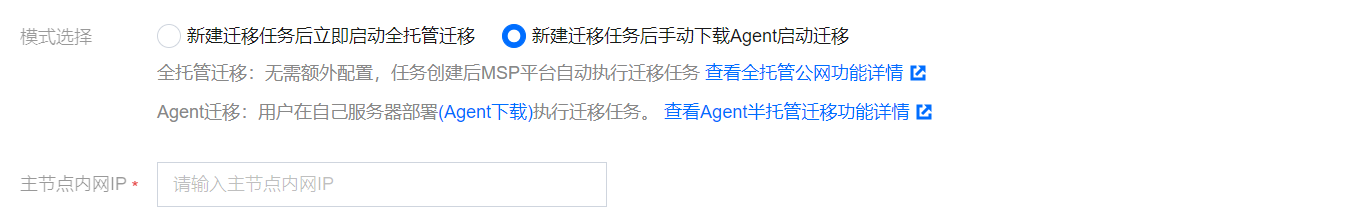 新建迁移任务后立即启动全托管迁移:选择托管迁移,用户单击“新建并启动”后云迁移服务将通过公网访问源存储进行迁移。