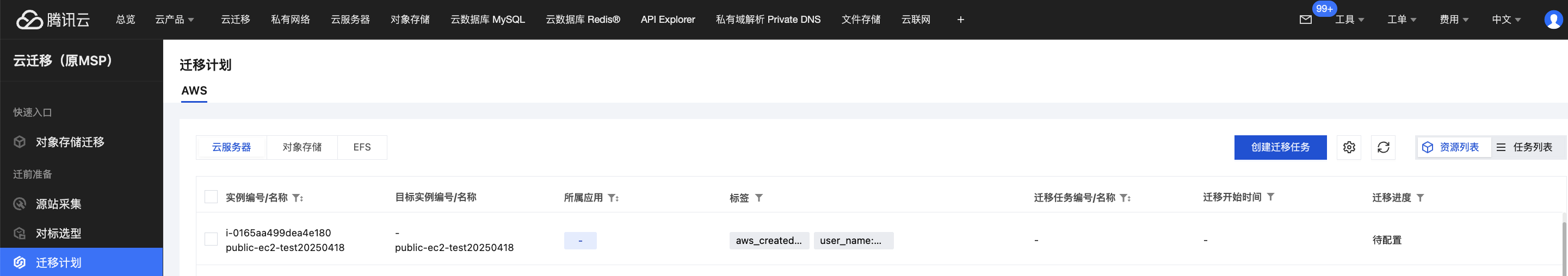 目前云迁移支持源端为 AWS 和 IDC 的服务器批量迁移。