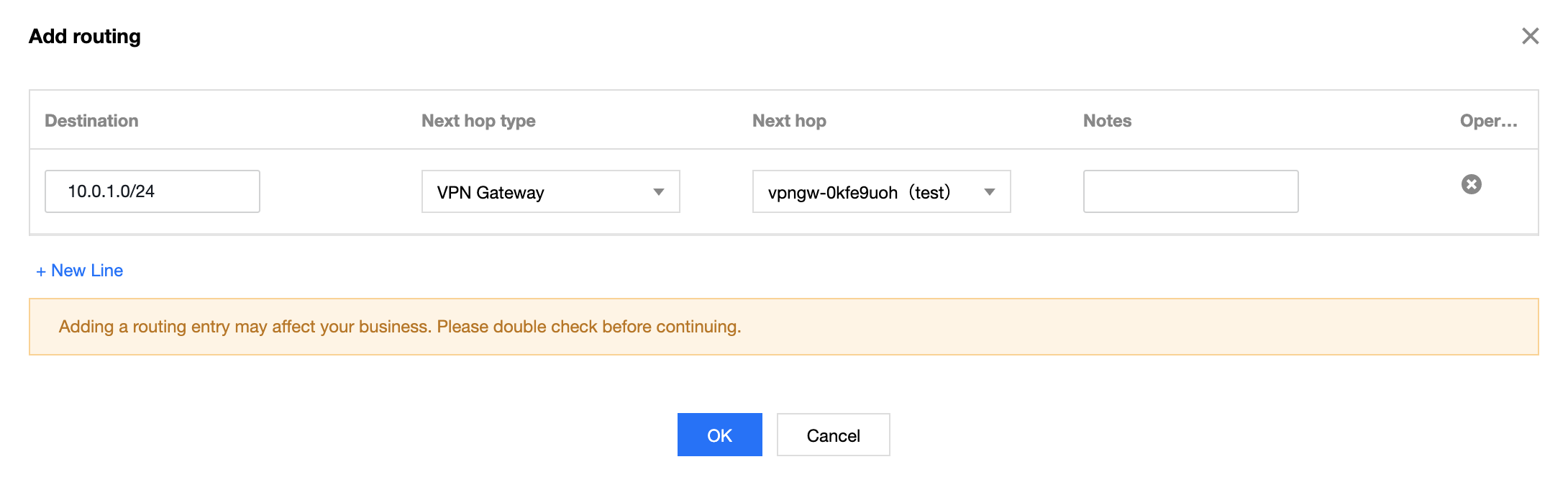 ,下一跳选择刚创建的 VPN 网关