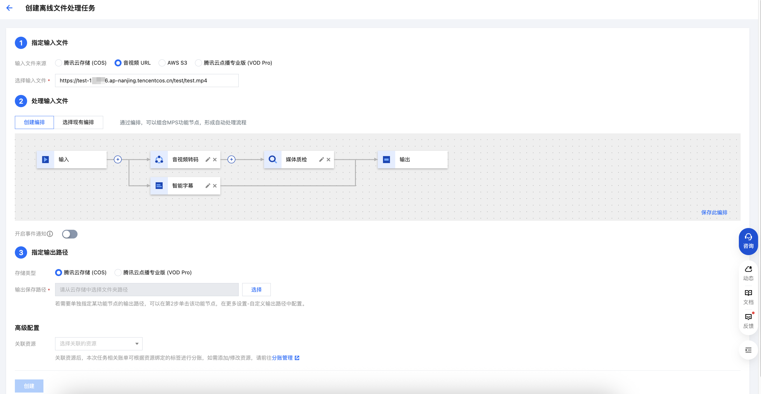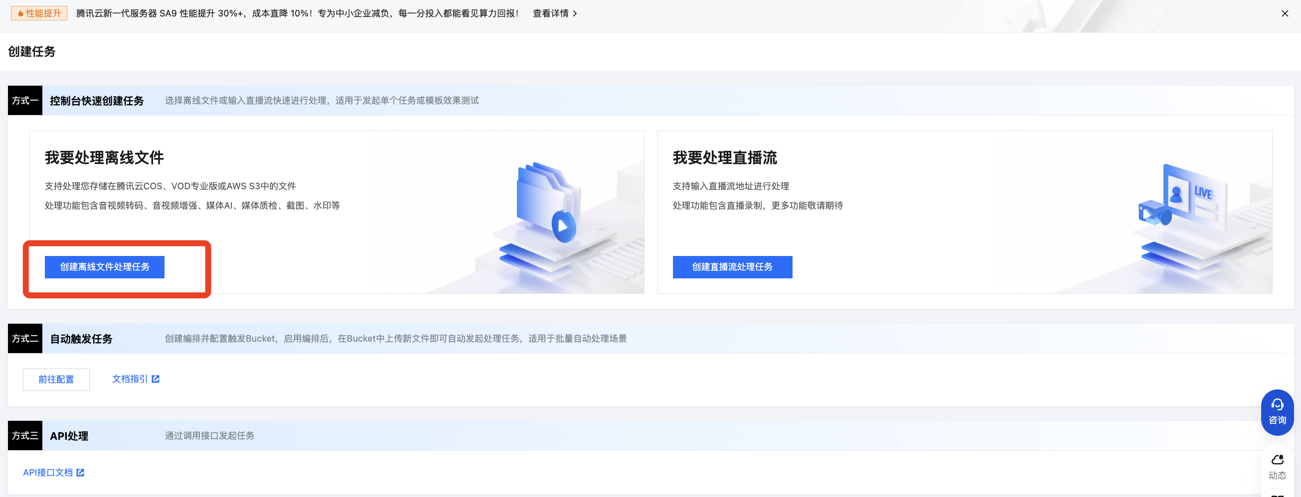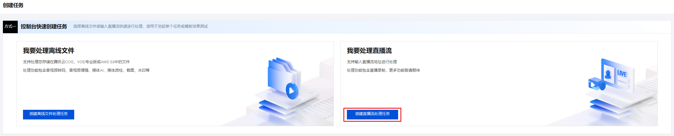 控制台快速创建任务:手动在控制台配置并发起处理任务。