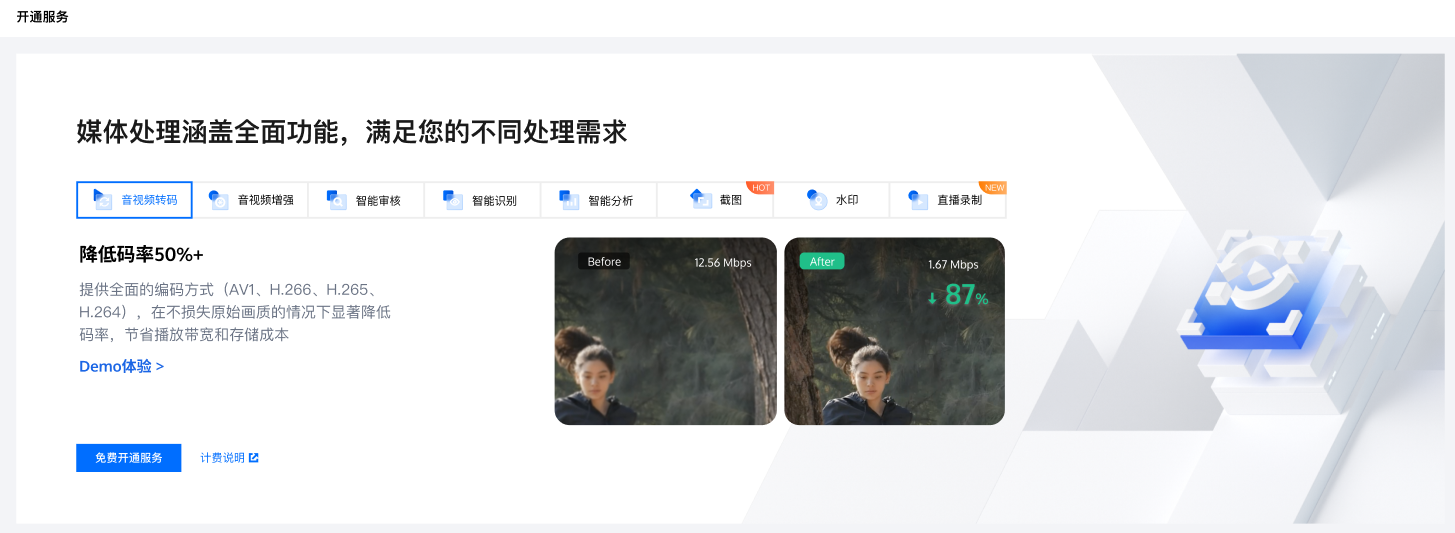 媒体处理可以对您的音视频文件或直播流进行处理。