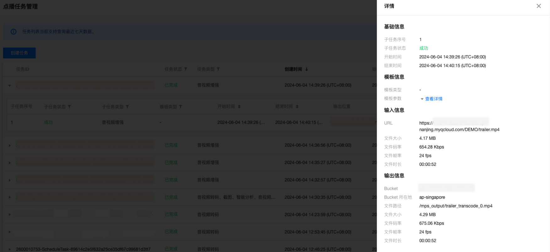3. 展开子任务列表,可以查看子任务相关信息,支持播放/查看子任务文件、下载子任务输出文件、查看子任务详细信息等操作。