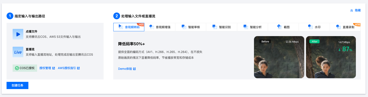 使用数据情况:可以查看该自然月的转码时长、截图数、智能识别与分析时长、智能审核时长数据。