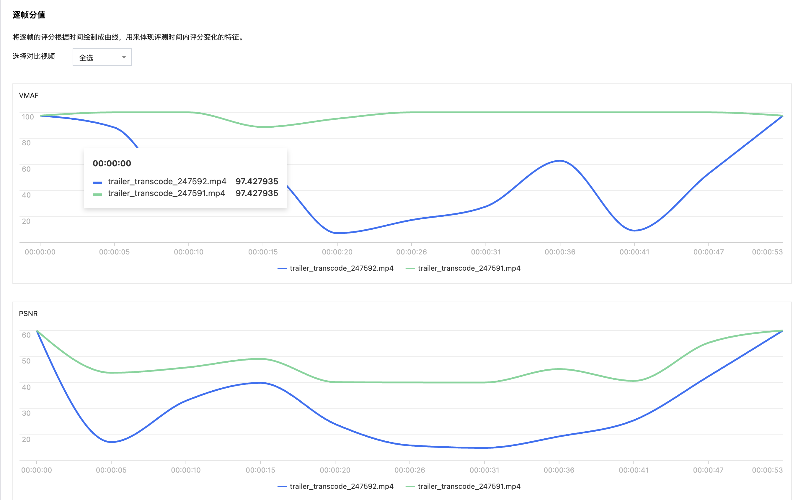 2.2 查看视频评测图线,支持通过筛选过滤对比视频。