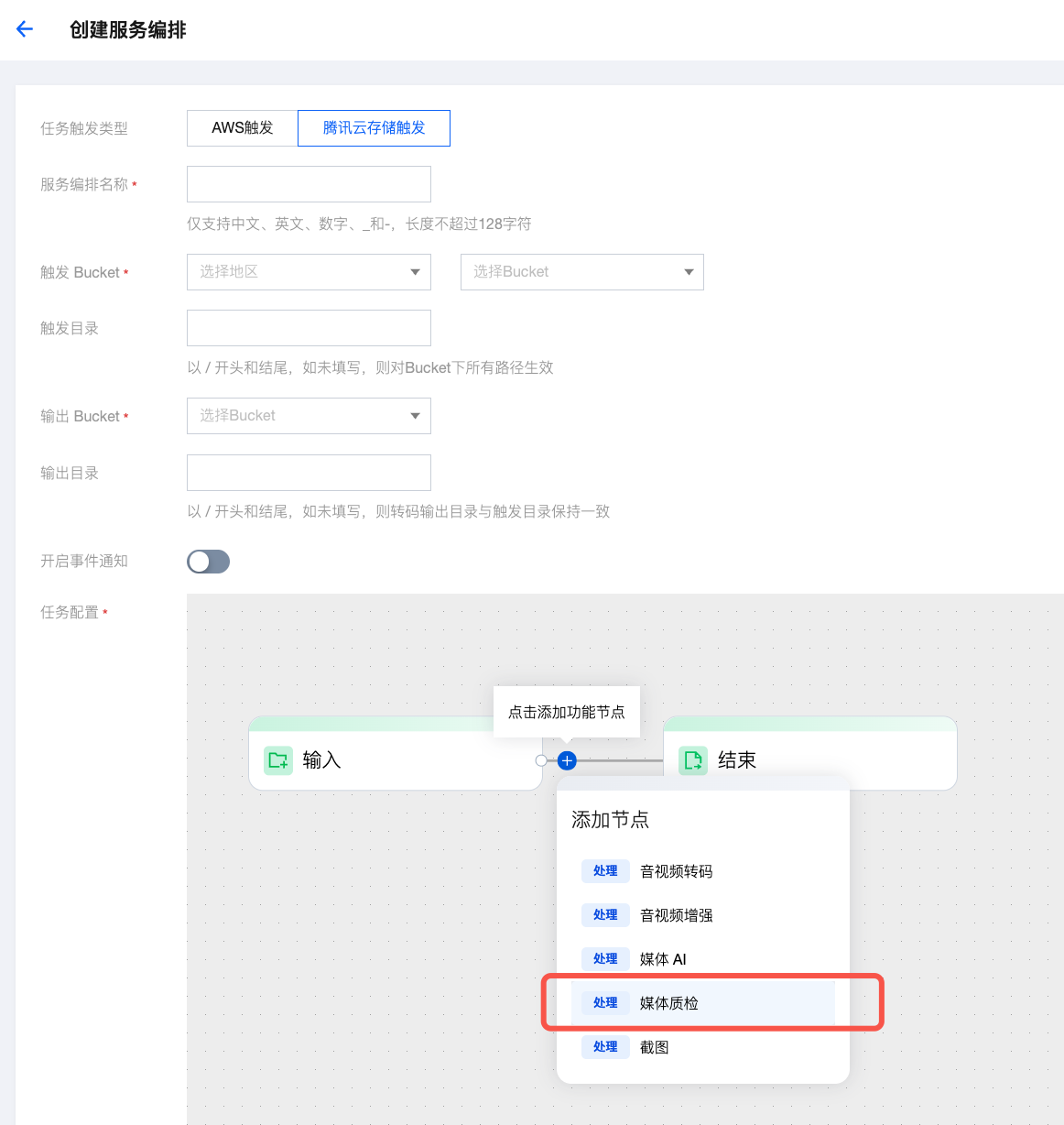 {"InputInfo": {"Type": "COS","CosInputInfo": {"Bucket": "test-<appid>","Region": "ap-shanghai","Object": "/video/test.mp4"}},"AiQualityControlTask": {"Definition": 10}}