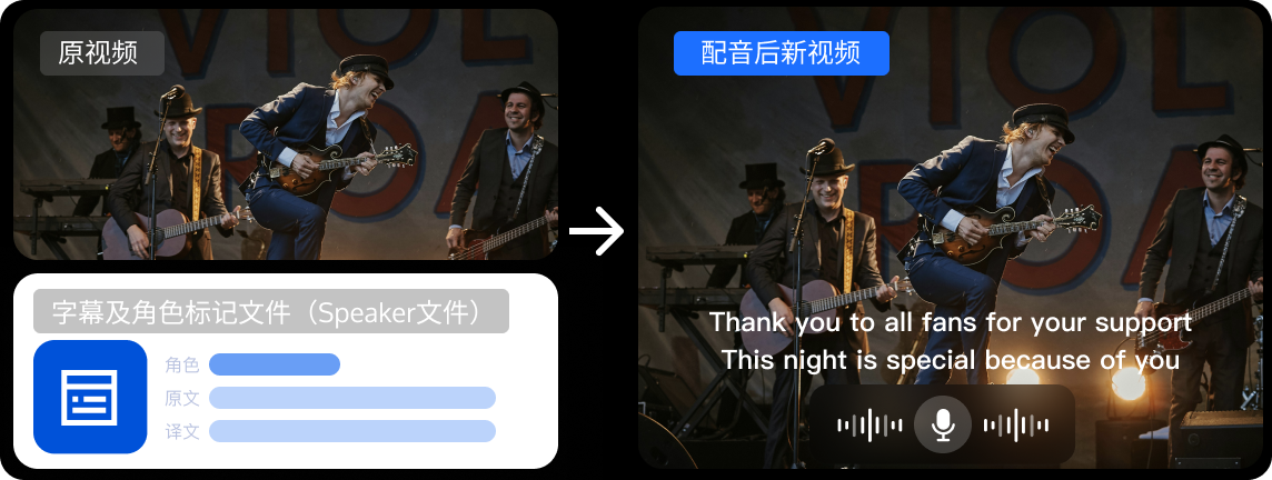 subtitleUrls | json | 否 | 输入字幕 Urls,和 speakerUrl 二选一。 |