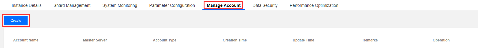 2. 在实例管理页面,选择账号管理页,单击创建账号