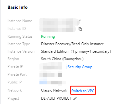 2. 在实例详情页的所属网络处,单击转VPC网络。