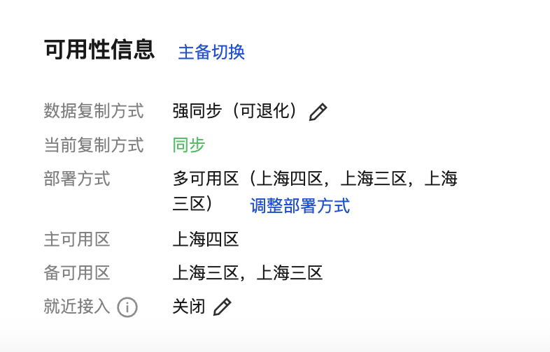 2. 在实例详情页的可用性信息 > 部署方式 处,单击调整部署方式。