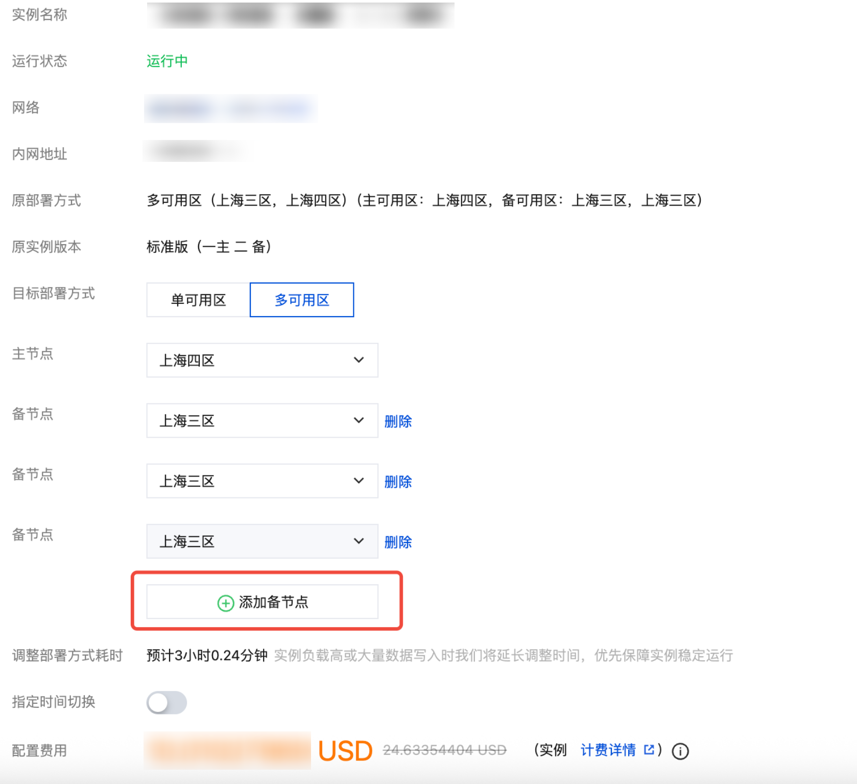 目标部署方式:可选择单可用区和多可用区,单可用区中从节点和主节点地区保持一致,多可用区中从节点可选择任意地区。