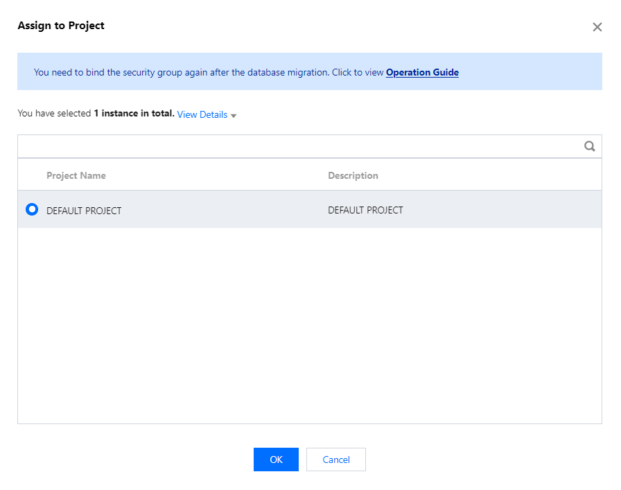 用户须在新购实例时为实例指定所属的项目,缺省为默认项目。