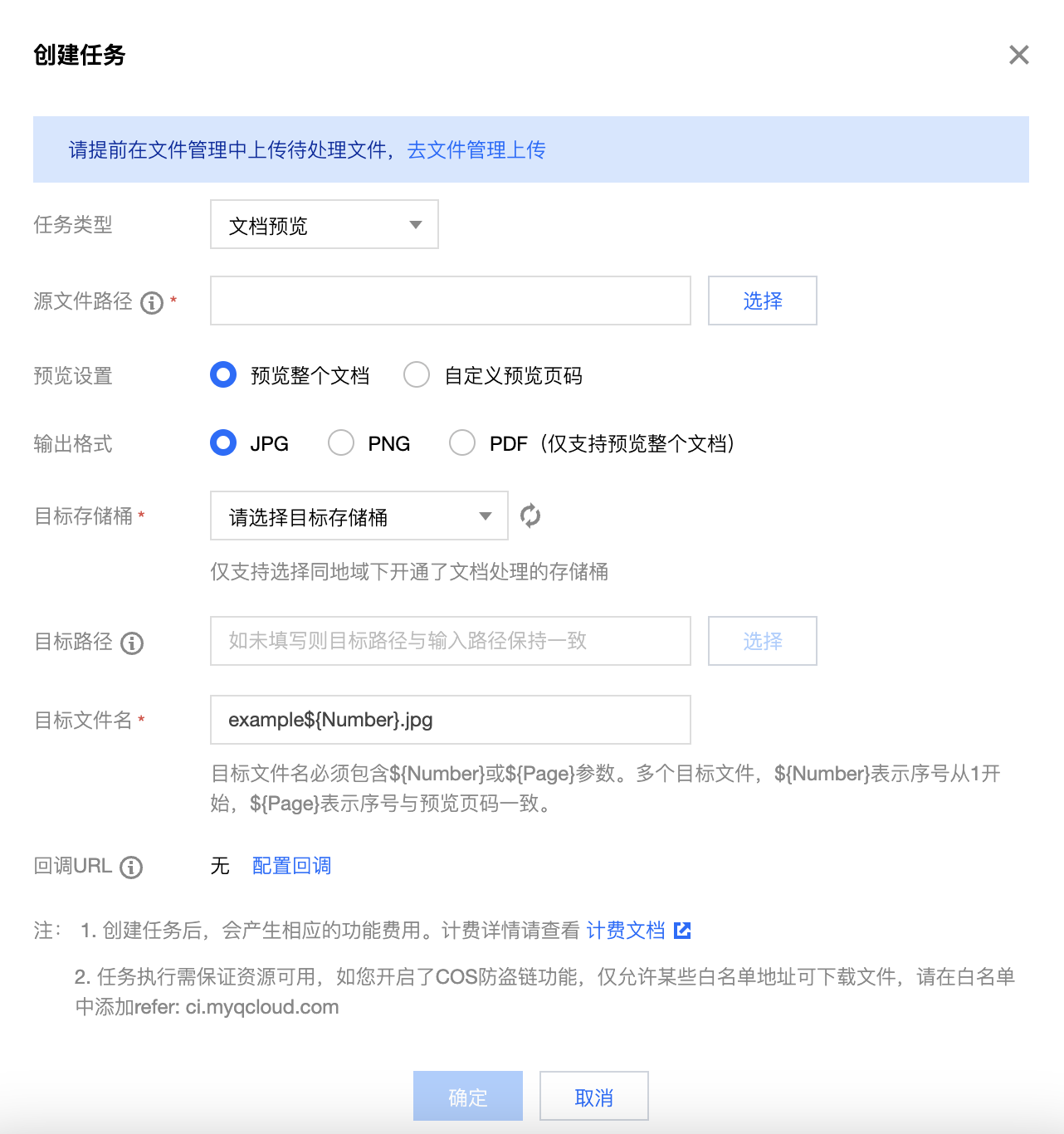 2. 单击确认,即可完成文档预览任务创建。