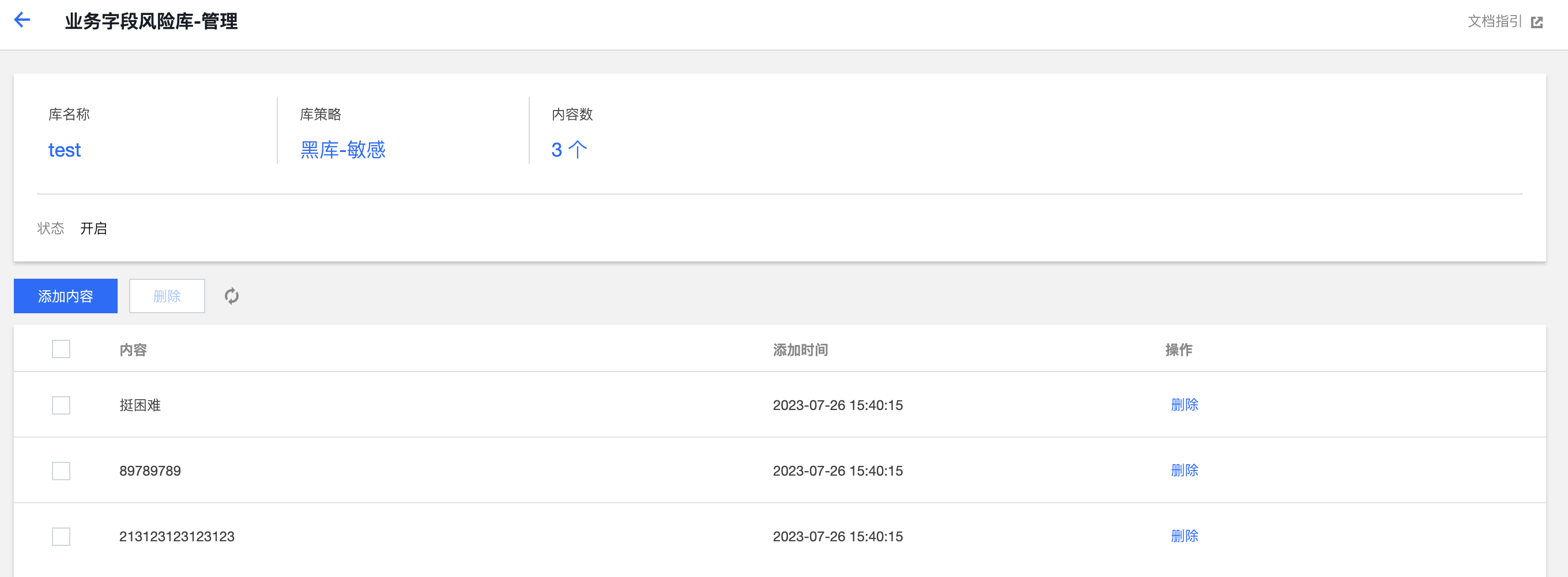 业务字段风险库针对您在调用审核接口时主动添加的业务字段进行管理。
