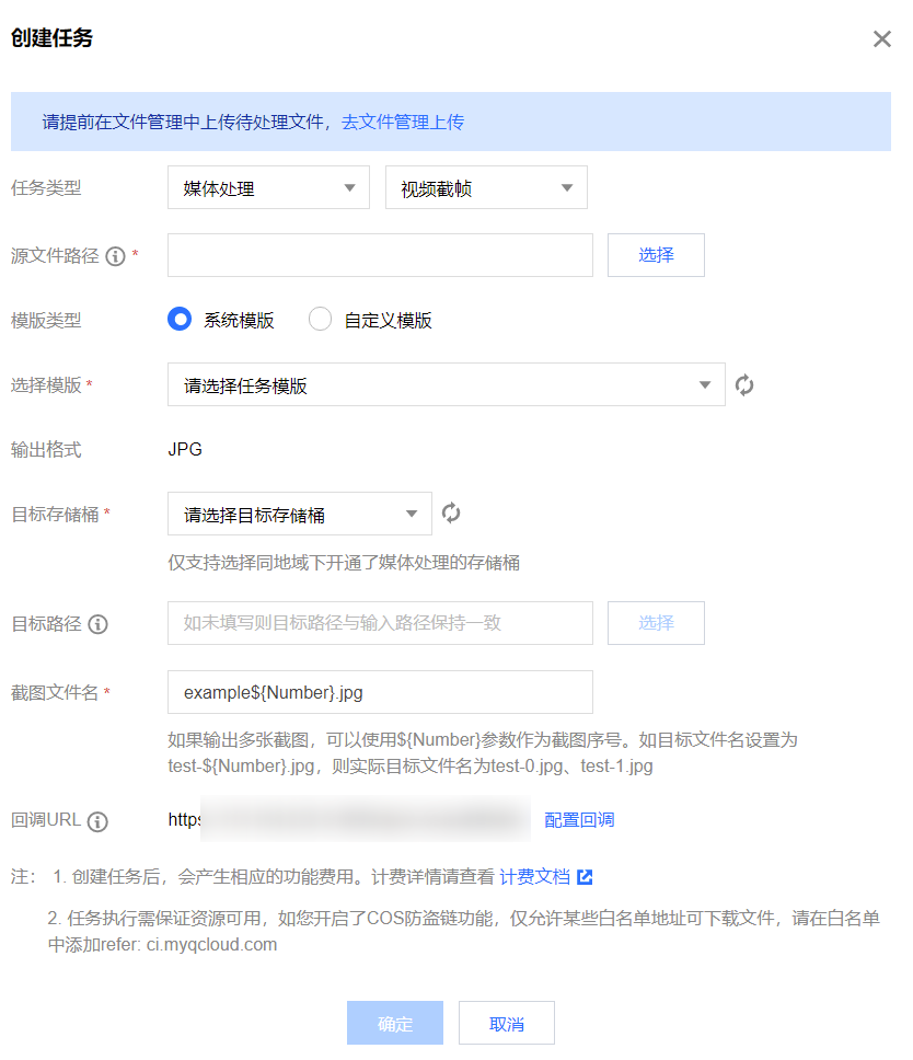 回调 URL:与队列绑定的回调地址信息,详情请参见 队列与回调 。 视频截帧