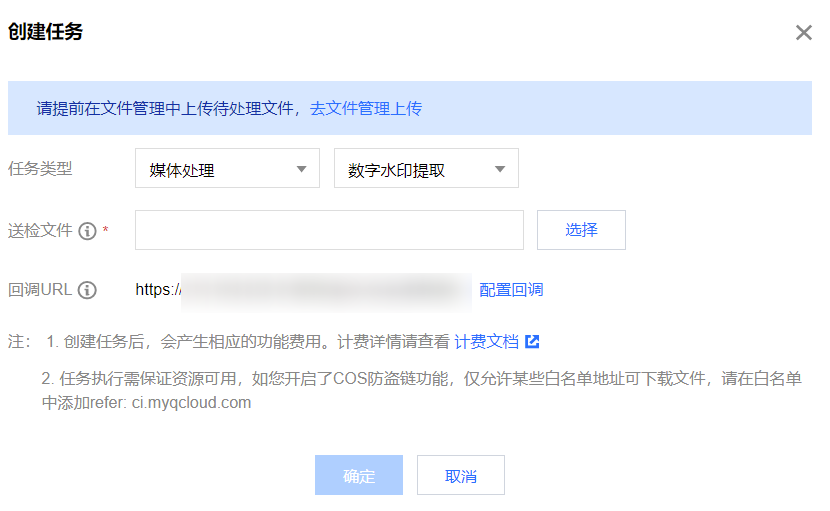 回调 URL:与队列绑定的回调地址信息,详情请参见 队列与回调 。 数字水印提取