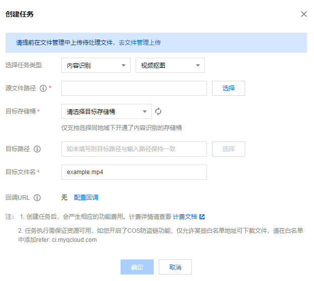 您发起 AI 内容识别任务时,请务必输入完整的文件名和文件格式,否则无法识别格式和处理。