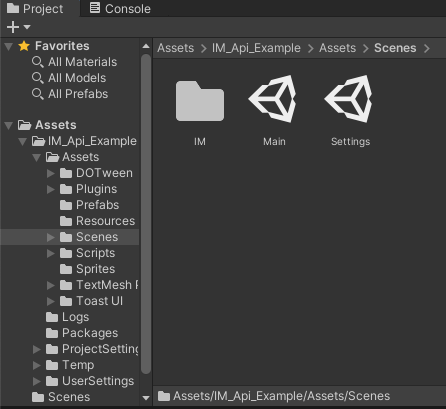 IM_Api_Example/Assets 文件夹下所有场景拖入 Build Settings,并保证 Main 场景的顺序在第一位。