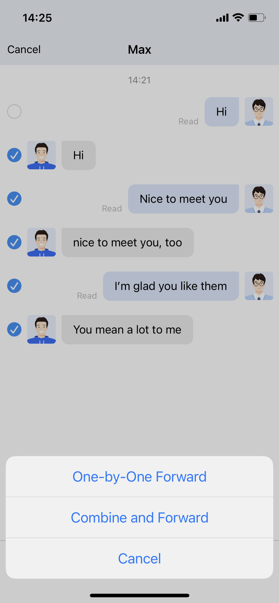 // 1. 将群聊消息转发到 c2c 会话// message1 message2 message3 是群聊消息let mergerMessage = chat.createMergerMessage({to: 'user1',conversationType: TencentCloudChat.TYPES.CONV_C2C,payload: {messageList: [message1, message2, message3],title: '大湾区前端人才中心的聊天记录',abstractList: ['allen: 666', 'iris: [图片]', 'linda: [文件]'],compatibleText: '请升级IMSDK到v2.10.1或更高版本查看此消息'},// 消息自定义数据(云端保存,会发送到对端,程序卸载重装后还能拉取到,v2.10.2起支持)// cloudCustomData: 'your cloud custom data'});// 2. 发送消息let promise = chat.sendMessage(mergerMessage);promise.then(function(imResponse) {// 发送成功console.log(imResponse);}).catch(function(imError) {// 发送失败console.warn('sendMessage error:', imError);});