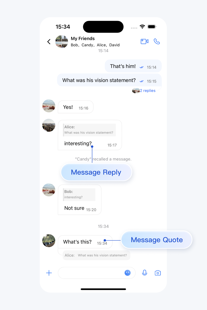 cloudCustomData,实现如下图所示的消息回复、引用等功能: