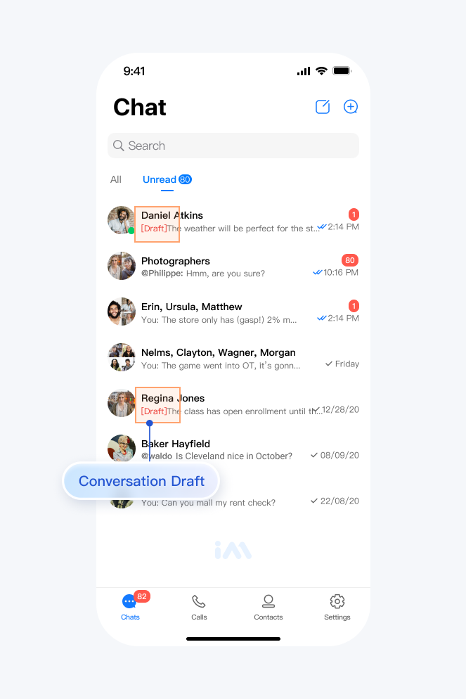 setConversationDraft 接口保存,以便于下次回到这个聊天界面时,通过 V2TIMConversation 对象的 draftText 字段,获取到尚未编辑完的内容,继续编辑。