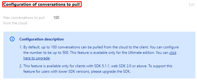 conv_unread_num | 会话未读消息数 | 直播群(AVChatRoom)不支持未读计数,默认为 0。 |