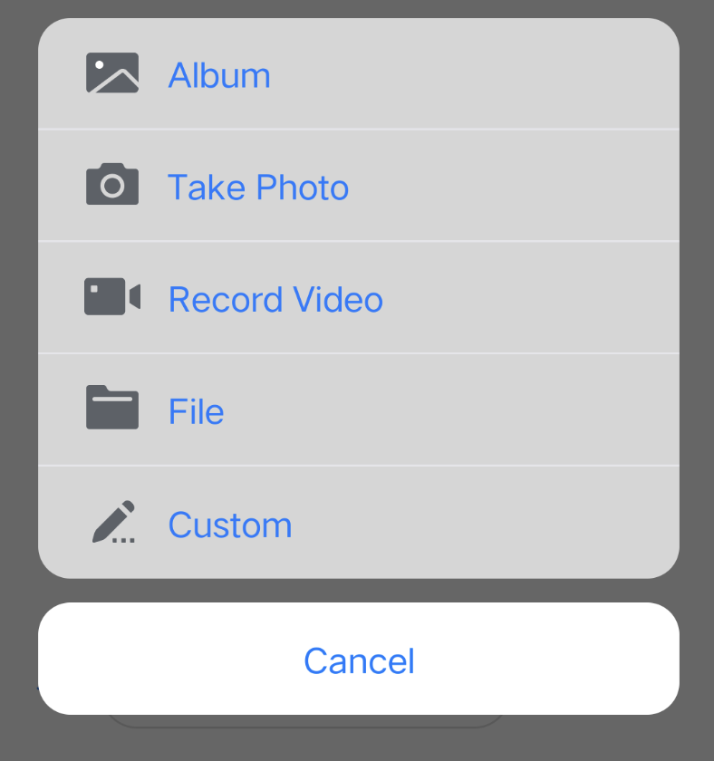 class TUIChatDataProvider: TUIChatBaseDataProvider {// ...private func createCustomInputMoreActionItemList(model: TUIChatConversationModel) -> [TUICustomActionSheetItem] {if self.customInputMoreActionItemList.isEmpty {var arrayM: [TUICustomActionSheetItem] = []let showCustom = TUIChatConfig.shared.enableWelcomeCustomMessage && model.enableWelcomeCustomMessageif showCustom {let link = TUICustomActionSheetItem(title: TUISwift.timCommonLocalizableString("TUIKitMoreLink"), leftMark: UIImage.safeImage(TUISwift.tuiChatImagePath_Minimalist("icon_more_custom"))) { [weak self] _ inguard let self else { return }let text = TUISwift.timCommonLocalizableString("TUIKitWelcome")var homePageLink = TUITencentCloudHomePageENlet language = TUIGlobalization.getPreferredLanguage() ?? ""if language.contains("zh-") {homePageLink = TUITencentCloudHomePageCN}do {let param: [String: Any] = ["businessID": "text_link", "text": text, "link": homePageLink]let data = try JSONSerialization.data(withJSONObject: param, options: [])let message = TUIMessageDataProvider.getCustomMessageWithJsonData(data, desc: text, extensionInfo: text)self.delegate?.dataProvider(self, sendMessage: message)} catch {print("[\\(self)] Post Json Error")}}link.priority = 100arrayM.append(link)}if let items = model.customizedNewItemsInMoreMenu as? [TUICustomActionSheetItem], items.count > 0 {arrayM.append(contentsOf: items)}self.customInputMoreActionItemList = arrayM}return self.customInputMoreActionItemList}// For Minimalist Edition.func getInputMoreActionItemList(userID: String, groupID: String, conversationModel: TUIChatConversationModel, pushVC: UINavigationController?, actionController: TIMInputViewMoreActionProtocol) -> [TUICustomActionSheetItem] {var result: [TUICustomActionSheetItem] = []result.append(contentsOf: self.createBuiltInInputMoreActionItemList(model: conversationModel))result.append(contentsOf: self.createCustomInputMoreActionItemList(model: conversationModel))// ...}}