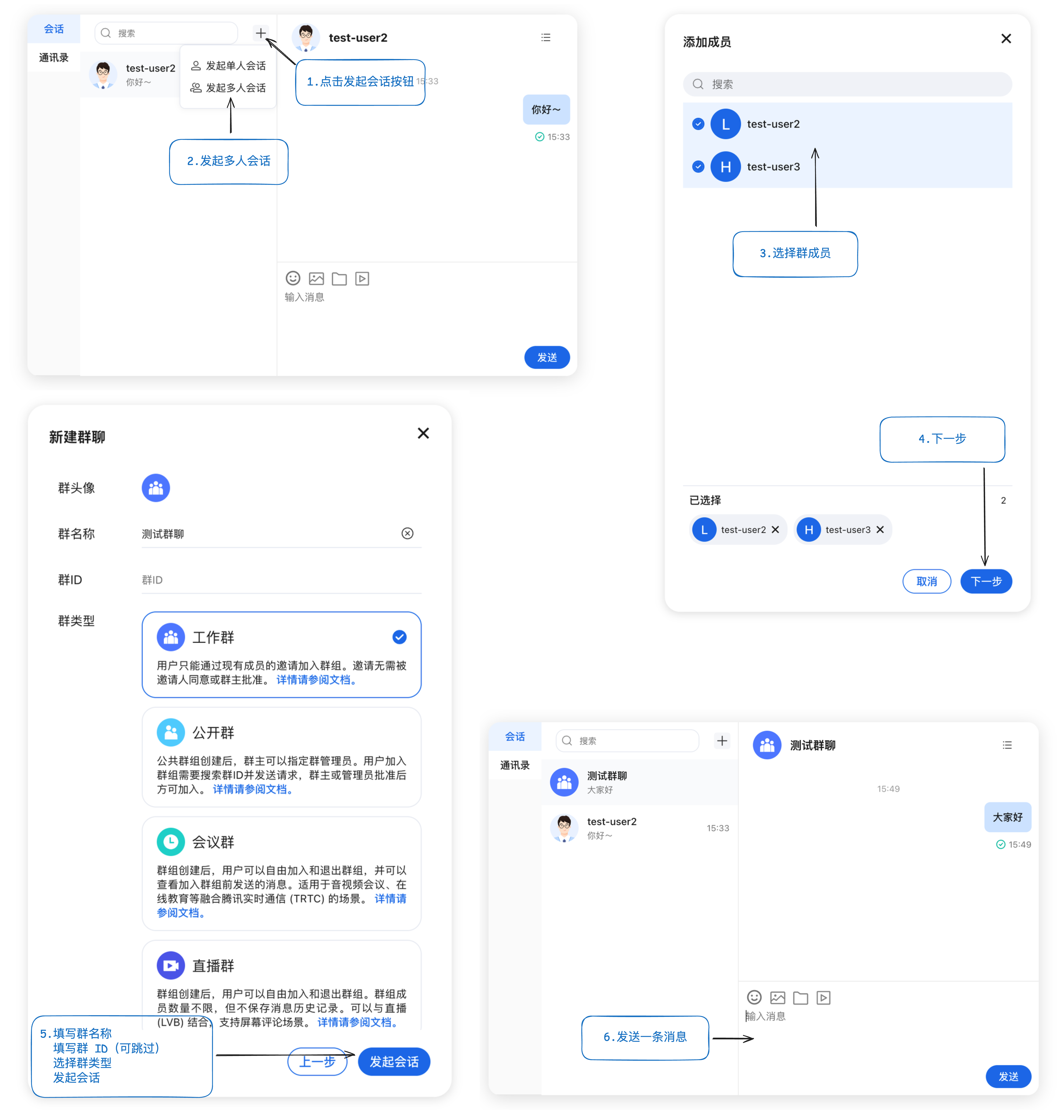 SDKAppID、userID 和 userSig,需在 步骤3 中获取相关信息后进行替换。