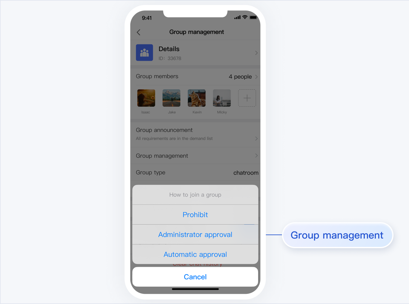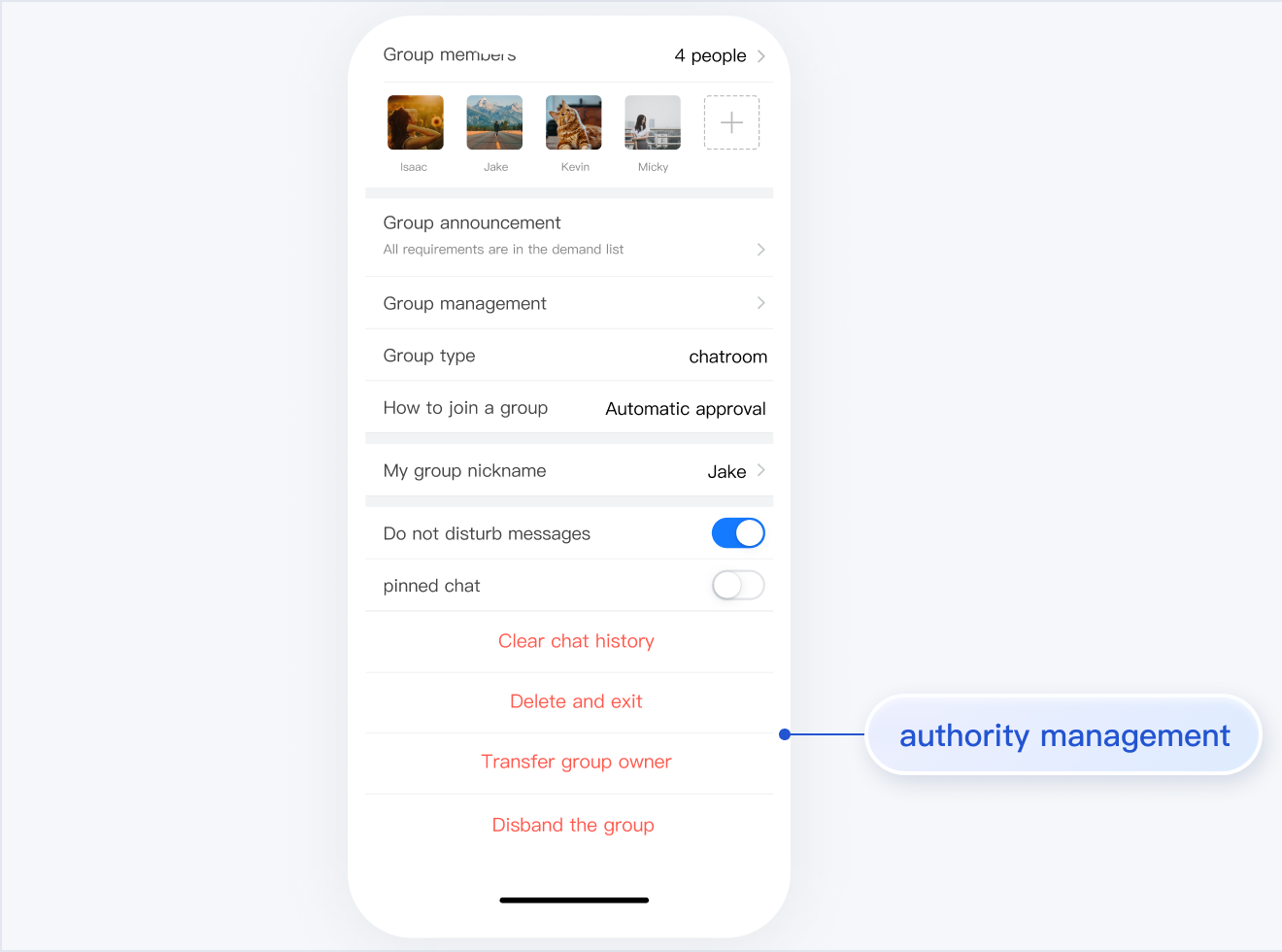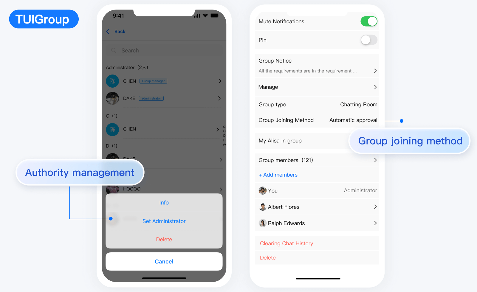 TUIGroup 主要负责群资料、群成员、群组权限的管理。