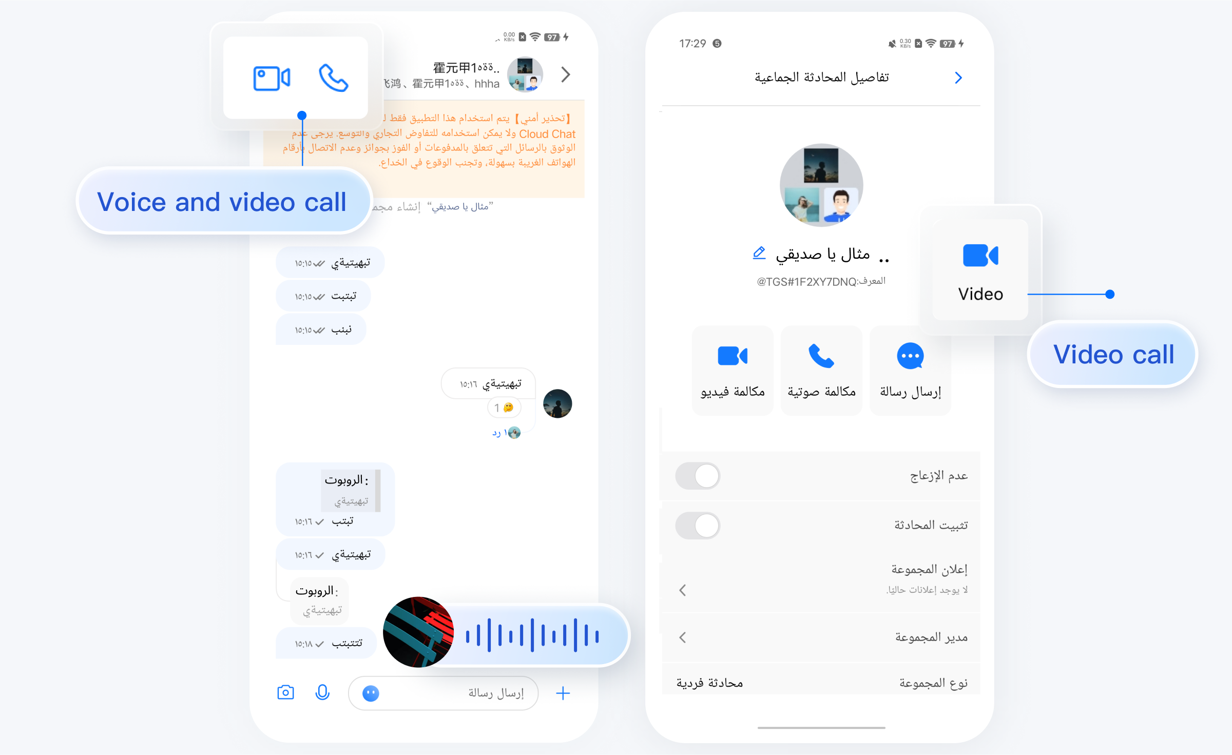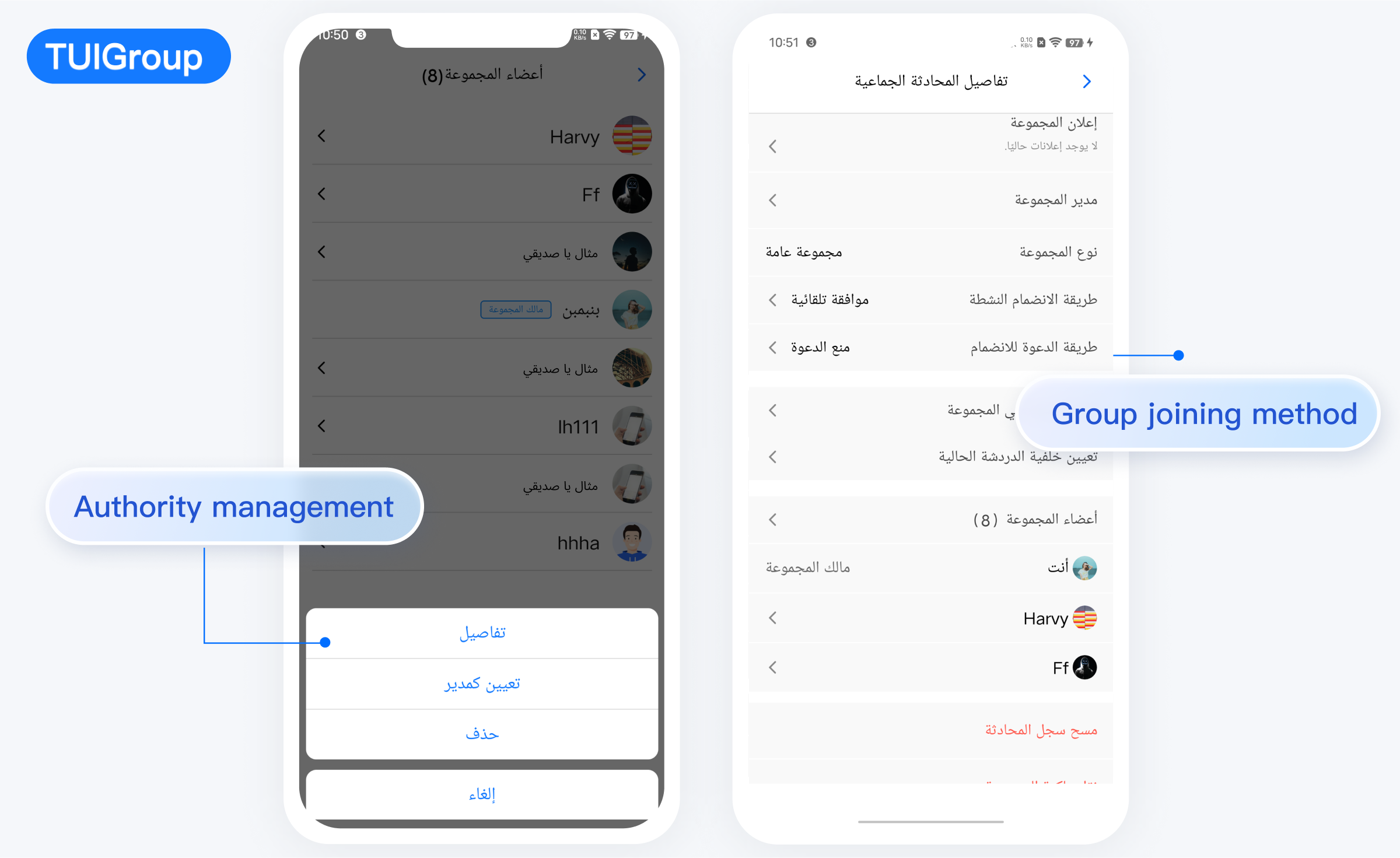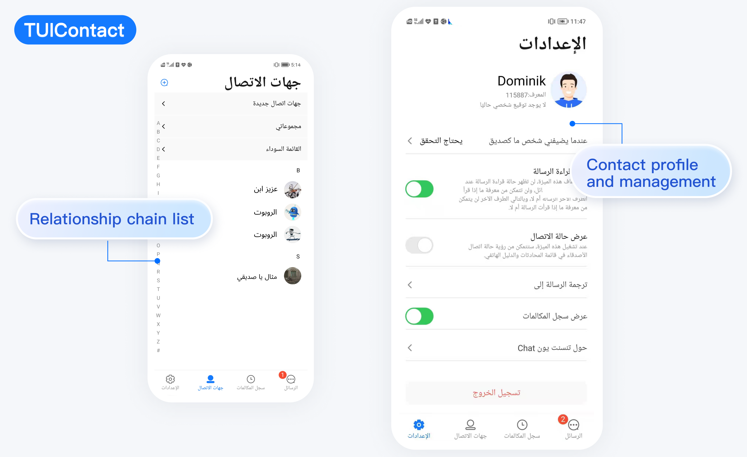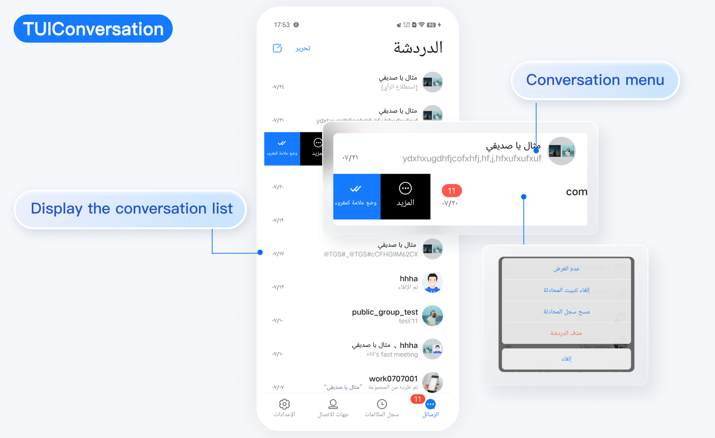 TUIKit 从 7.5.4852 版本开始新增了 RTL 语言(文字方向从右到左的语言,比如阿拉伯语、希伯来语等)支持,当应用内语言为 RTL 语言时,TUIKit 会自动切换到 RTL 样式;同时内置语言新增了阿拉伯语。