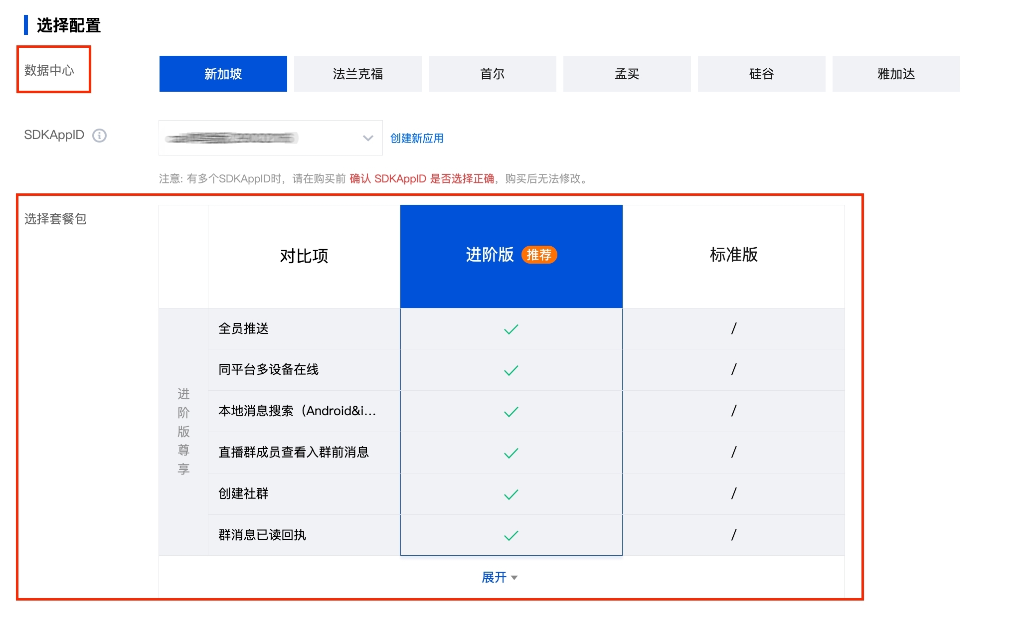 每个套餐仅对单个 SDKAppID 生效,如果您有多个 SDKAppID 需要购买,您需依次为其购买单独的版本。同时 Call 版本购买后立即生效,不支持更换 SDKAppId,您在选购时请务必确认您需要购买的 SDKAppId。