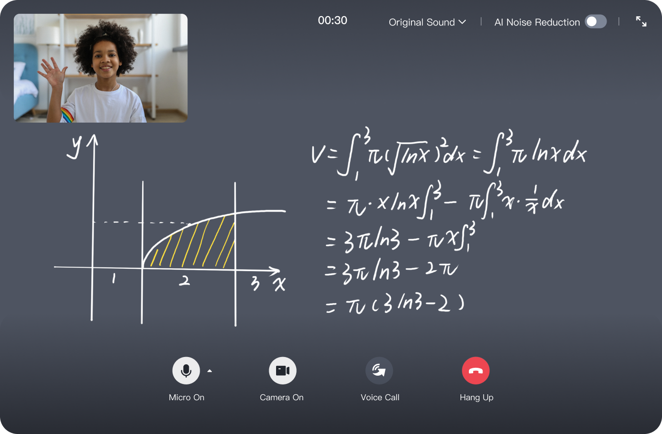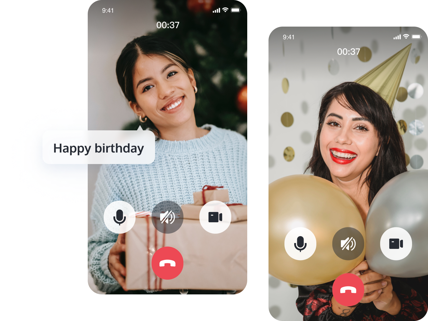 1v1 语音/视频通话 群组通话(9人及以下)、中途邀请他人、中途加入 自定义来电铃声 自定义昵称、头像 开启/关闭悬浮窗 开启/关闭来电铃声 | 离线推送 虚拟背景 云端录制 AI 降噪 全球互通 弱网卡顿优化 通话记录 | 完善的 UI 交互 支持多平台互联互通 支持多设备登录 |