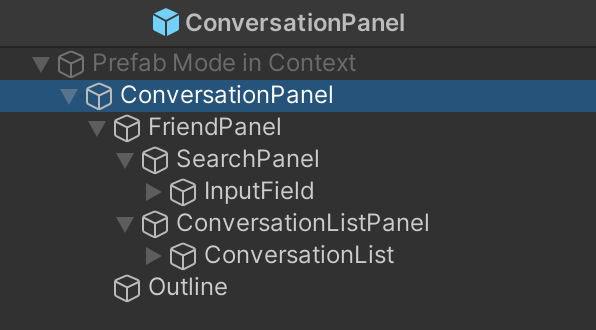 Script/Components/Conversation.cs里。每个会话的样式在 ConversationItem.prefabs里。FriendPanelSearchPanelConversationListPanel