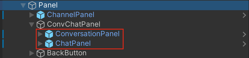 Main.cs(登录界面) 和 Chat.cs(聊天界面)。Prefabs里的组件构成,可以通过修改 Prefabs修改显示内容和样式。ConvMessagePanelConversationNamePanelMessageContentPanelActionPanelOverlayPanelCloseButton