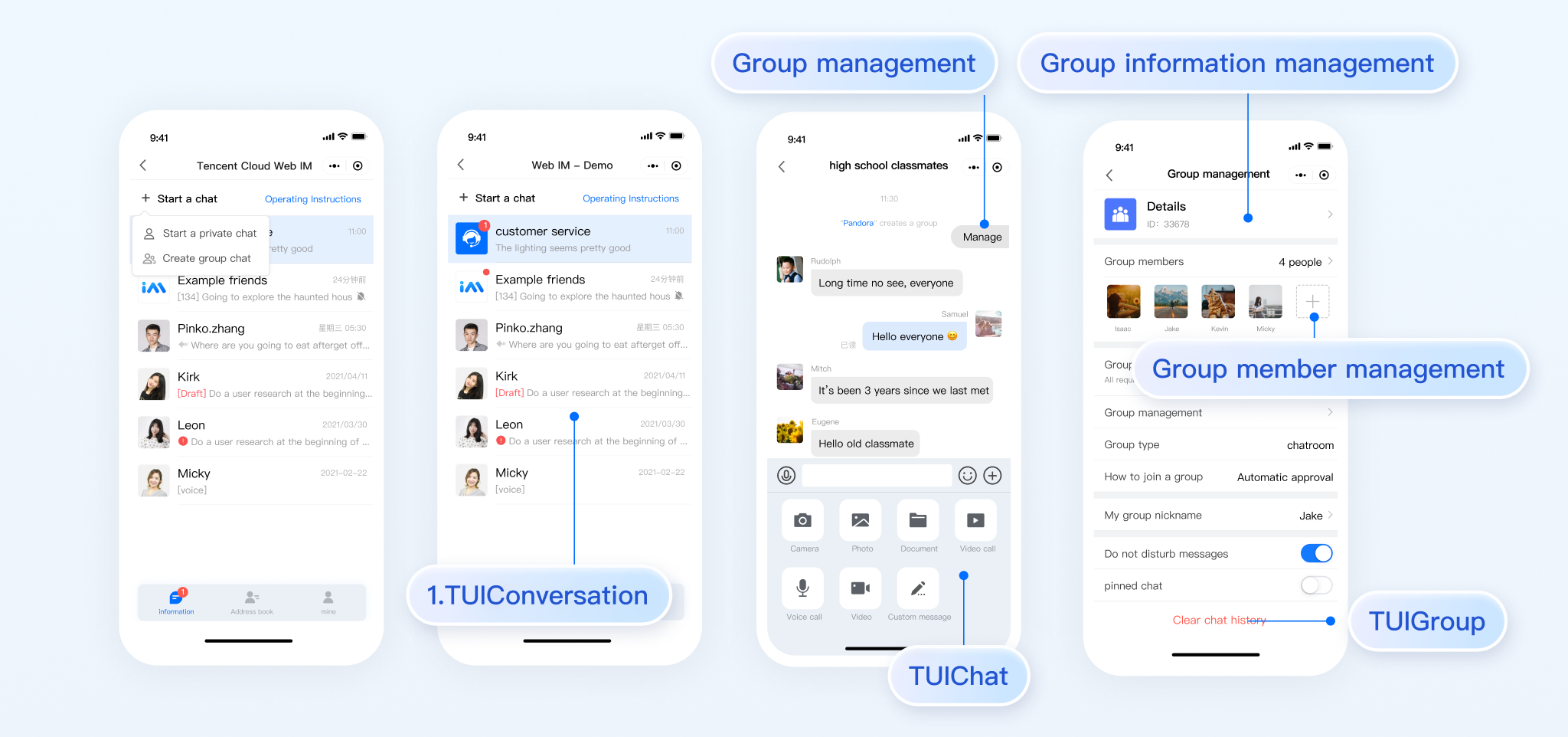 {"pages": [{"path": "pages/index/index" // 您的项目首页}],"subPackages": [{"root": "TUIKit","pages": [{"path": "components/TUIConversation/index","style": {"navigationBarTitleText": "腾讯云 IM"}},{"path": "components/TUIChat/index","style": {"navigationBarTitleText": "腾讯云 IM","app-plus": {"softinputMode": "adjustResize","titleNView": {"buttons": [{"type": "menu"}]}},"h5": {"titleNView": {"buttons": []}}}},// 集成 chat 组件,必须配置该路径: 视频播放{"path": "components/TUIChat/video-play","style": {"navigationBarTitleText": "腾讯云 IM"}},{"path": "components/TUIChat/web-view","style": {"navigationBarTitleText": "腾讯云 IM"}},{"path": "components/TUIContact/index","style": {"navigationBarTitleText": "腾讯云 IM"}},{"path": "components/TUIGroup/index","style": {"navigationBarTitleText": "腾讯云 IM"}},{"path": "components/TUISearch/index","style": {"navigationBarTitleText": "聊天记录"}}]}],"preloadRule": {"pages/index/index": {"network": "all","packages": ["TUIKit"]}},"globalStyle": {"navigationBarTextStyle": "black","navigationBarTitleText": "uni-app","navigationBarBackgroundColor": "#F8F8F8","backgroundColor": "#F8F8F8"}}