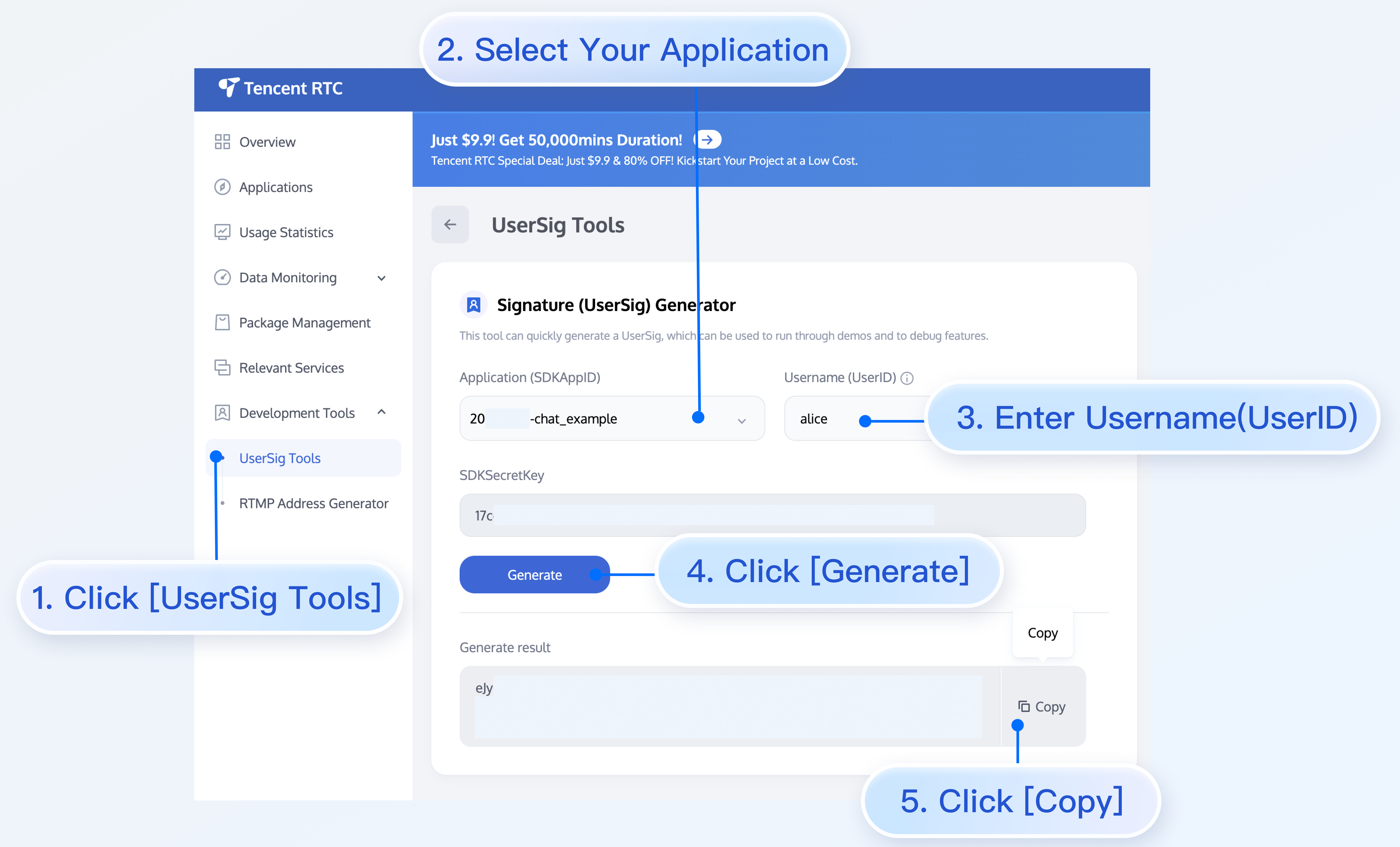 <script lang="ts">import { TUILogin } from '@tencentcloud/tui-core-lite';import { TUIChatEngine } from '@tencentcloud/chat-uikit-engine-lite';// #ifdef APP-PLUS || H5import { TUIChatKit } from './TUIKit';TUIChatKit.init();// #endiflet vueVersion = 2;// #ifdef VUE3vueVersion = 3;// #endif// Required information// You can get userSig from TencentCloud chat console for Testing TUIKit.// Deploy production environment please get it from your server.// View https://www.tencentcloud.com/document/product/269/32688?from_cn_redirect=1uni.$SDKAppID = 0; // Your SDKAppIDuni.$userID = ''; // Your userIDuni.$userSig = ''; // Your userSigexport default {onLaunch: function () {TUILogin.login({SDKAppID: uni.$SDKAppID,userID: uni.$userID,userSig: uni.$userSig,framework: `vue${vueVersion}` // framework used vue2 / vue3}).then(() => {TUIChatEngine.isReady();}).catch(() => {});}};</script><style>/* common css for page */uni-page-body,html,body,page {width: 100% !important;height: 100% !important;overflow: hidden;}</style>