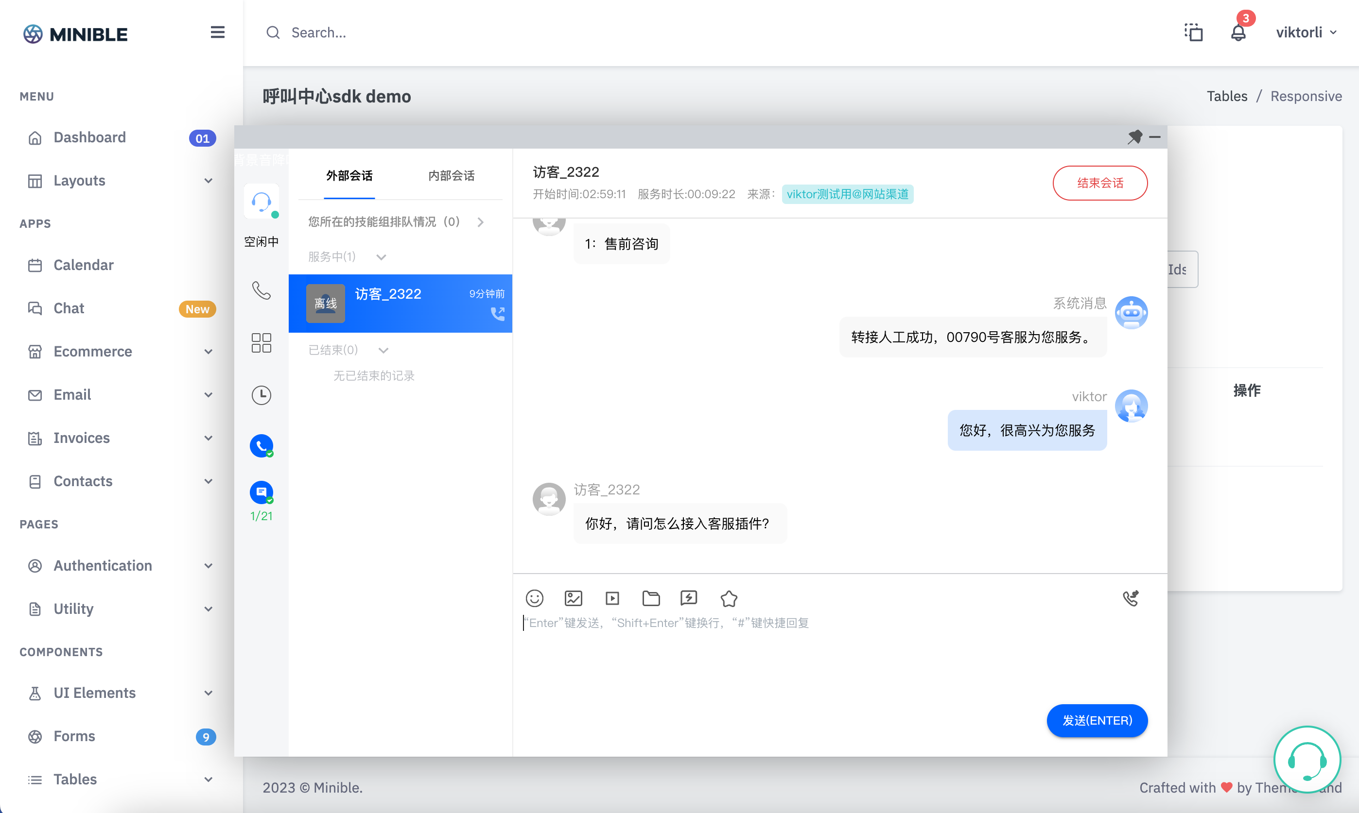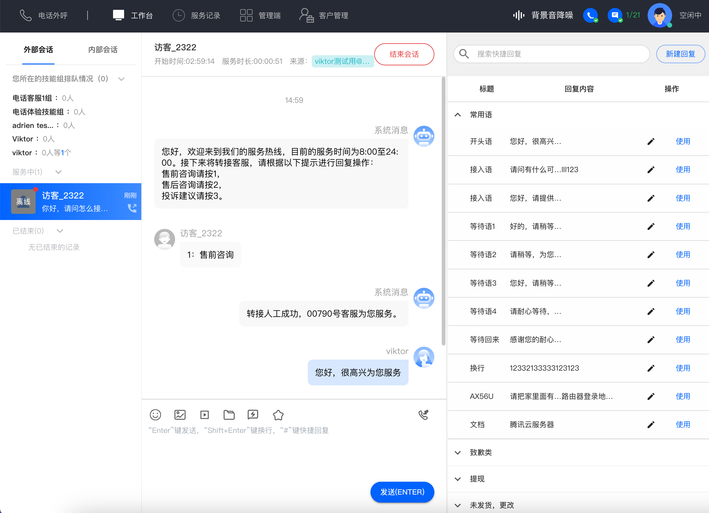 可以将完整的座席工作台集成到您自己的系统,效果如下: