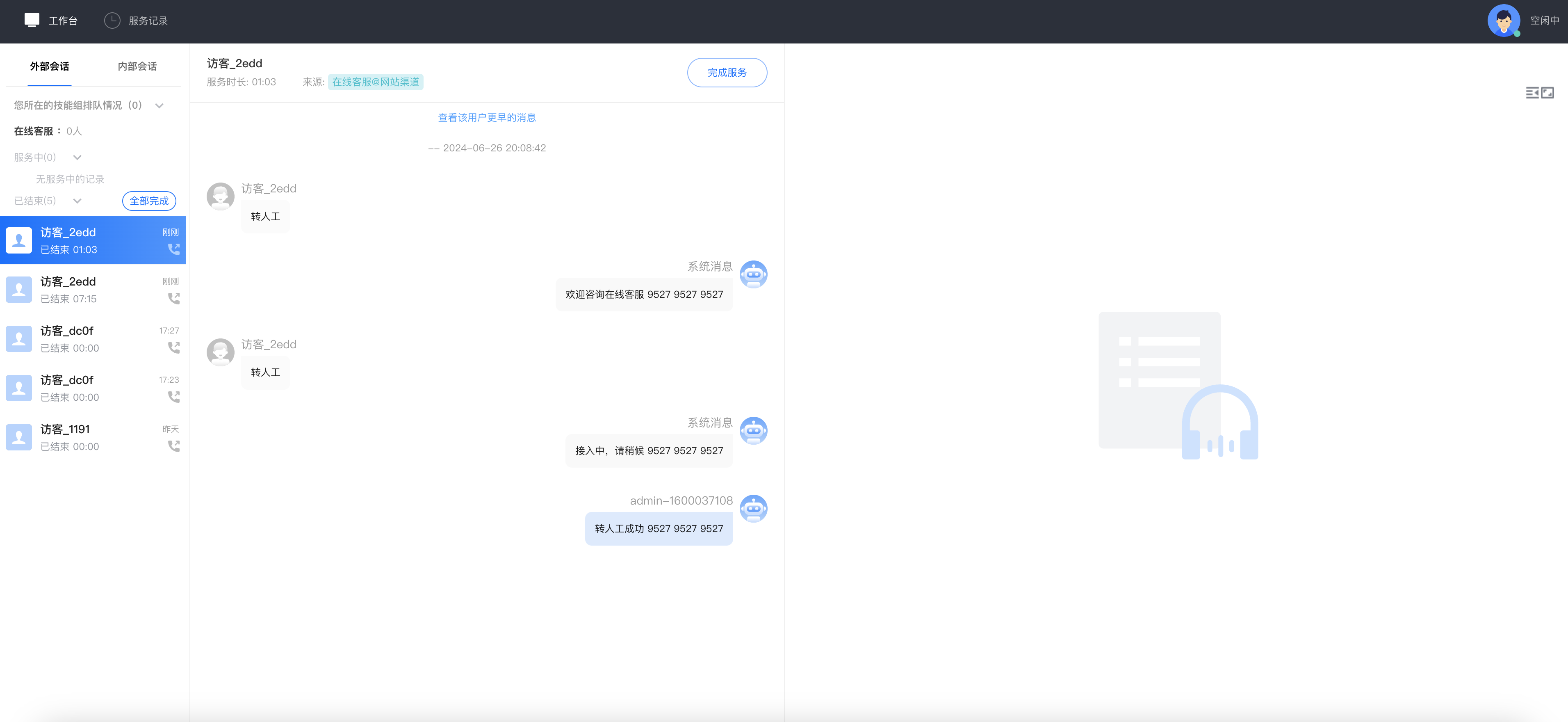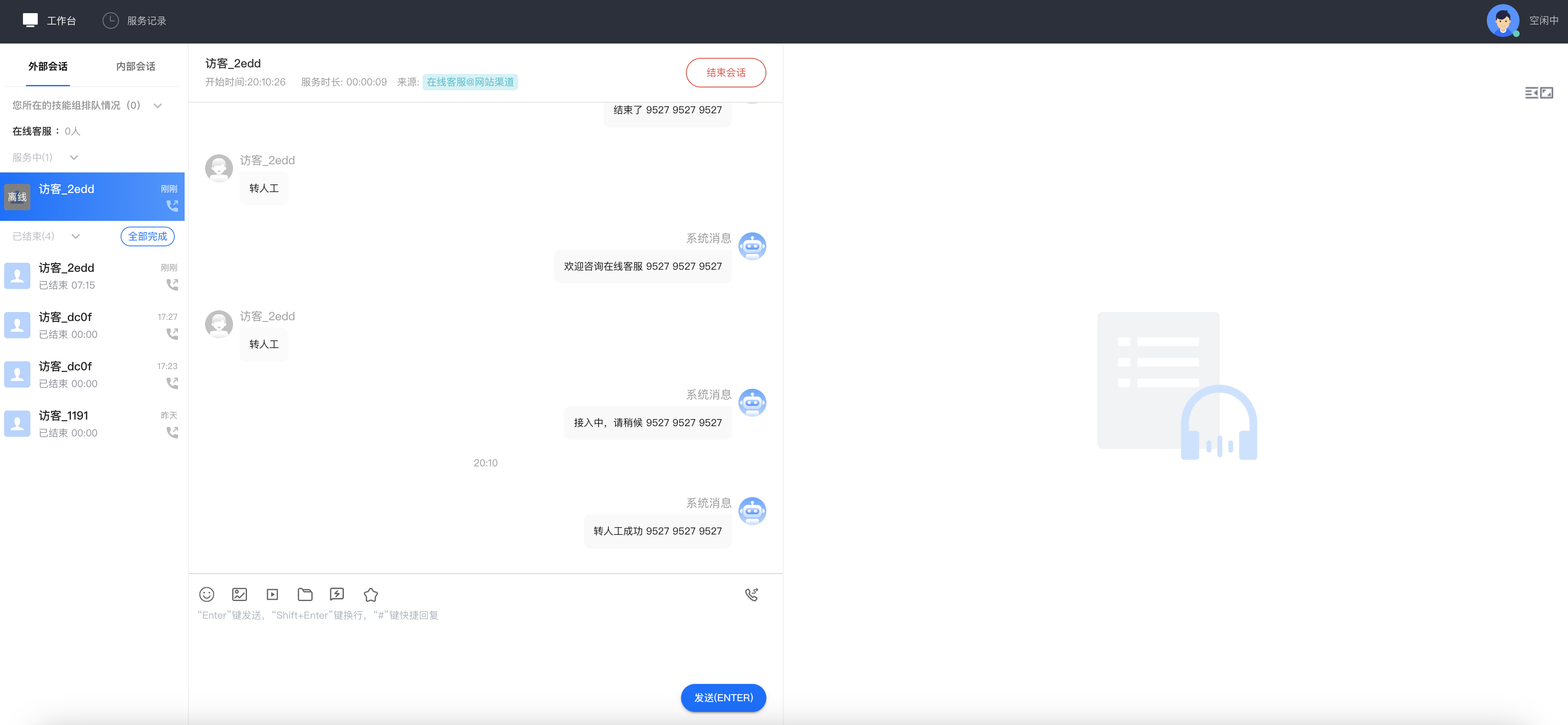 客服可手动单击会话窗口右上角结束会话,即可手动结束与该用户的会话。