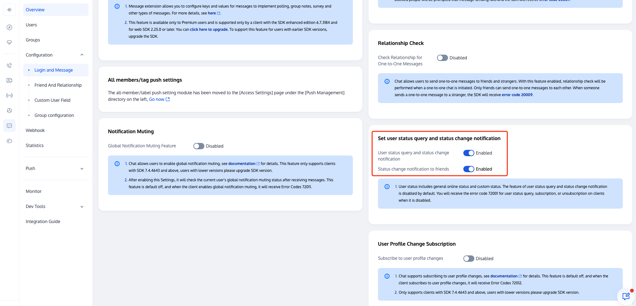 “用户在线状态”功能需要在 Chat 控制台 打开用户状态开关,使用前请确认开关已经打开。 会话列表里只有好友才支持显示在线状态。如果您需要支持非好友显示在线状态,需要主动订阅非好友状态并调用 API 自行实现 UI,API 参考:用户状态。 开启用户在线状态