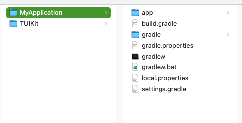 // Include the internal communication module (required module)include ':tuicore'project(':tuicore').projectDir = new File(settingsDir, '../TUIKit/TUICore/tuicore')// Include the Chat component common module (required module)include ':timcommon'project(':timcommon').projectDir = new File(settingsDir, '../TUIKit/TIMCommon/timcommon')// Include the chat feature module (basic feature module)include ':tuichat'project(':tuichat').projectDir = new File(settingsDir, '../TUIKit/TUIChat/tuichat')